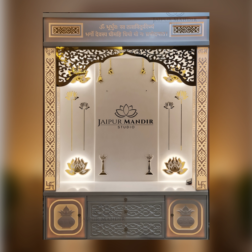 At Jaipur Mandir Studio, we create thoughtfully designed Corian mandirs that respect spiritual sentiments while enhancing your interiors. Water-resistant, easy to clean, and fully customizable, this mandir is perfect for modern homes.