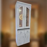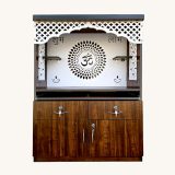 WOODEN CUM Corian Mandir with Backlight adds a divine charm to your space with its soft glow and flawless white finish , IT offers a smooth surface, timeless beauty, and a serene ambiance when illuminated.